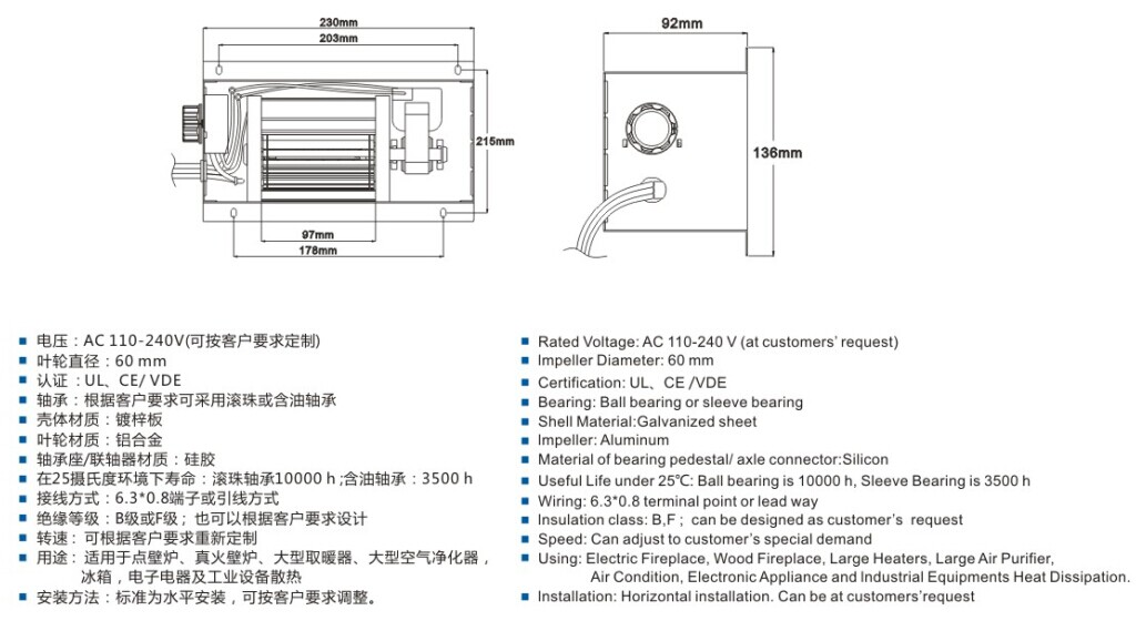 風(fēng)輪尺寸:60*100mm,60是直徑,100是長度